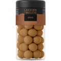 Sweet liquorice coated with sea salt, dulce chocolate and sugar: 53% dulce chocolate (cocoa solids: 23% min.) (EU) (sugar, milk powder, cocoa butter, whey powder (milk), cocoa mass, milk fat, emulsifiers (soy lecithin), natural flavours), 20% sugar (EU), rice flour, invert sugar syrup, molasses, glucose syrup, 2% raw liquorice (non-EU), glazing agents (shellac, carnauba wax, gum arabic), rapeseed oil, 0.5% sea salt (non-EU), colour: caramel, salt, stabilizer: gum arabic, anise oil.